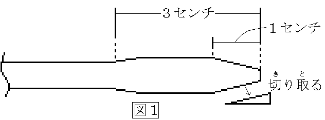 3,柔らかくした部分を、端から1センチくらい図1のように切れば完成です。